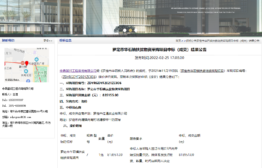 鼎點(diǎn)娛樂(lè)工程咨詢有限公司受《羅定市華石鎮(zhèn)人民政府》的委托,于2021年11月19日就(羅定市華石鎮(zhèn)扶貧物資采購(gòu)項(xiàng)目)采購(gòu)項(xiàng)目編號(hào):(ZDYRGDYF2021ZC006)詢價(jià)進(jìn)行采購(gòu),F(xiàn)就本次采購(gòu)的中標(biāo)(成交)結(jié)果公告如下:一、采購(gòu)項(xiàng)目編號(hào):ZDYRGDYF2021ZC006二、采購(gòu)項(xiàng)目名稱:羅定市華石鎮(zhèn)扶貧物資采購(gòu)項(xiàng)目三、采購(gòu)項(xiàng)目預(yù)算金額([詳細(xì)]